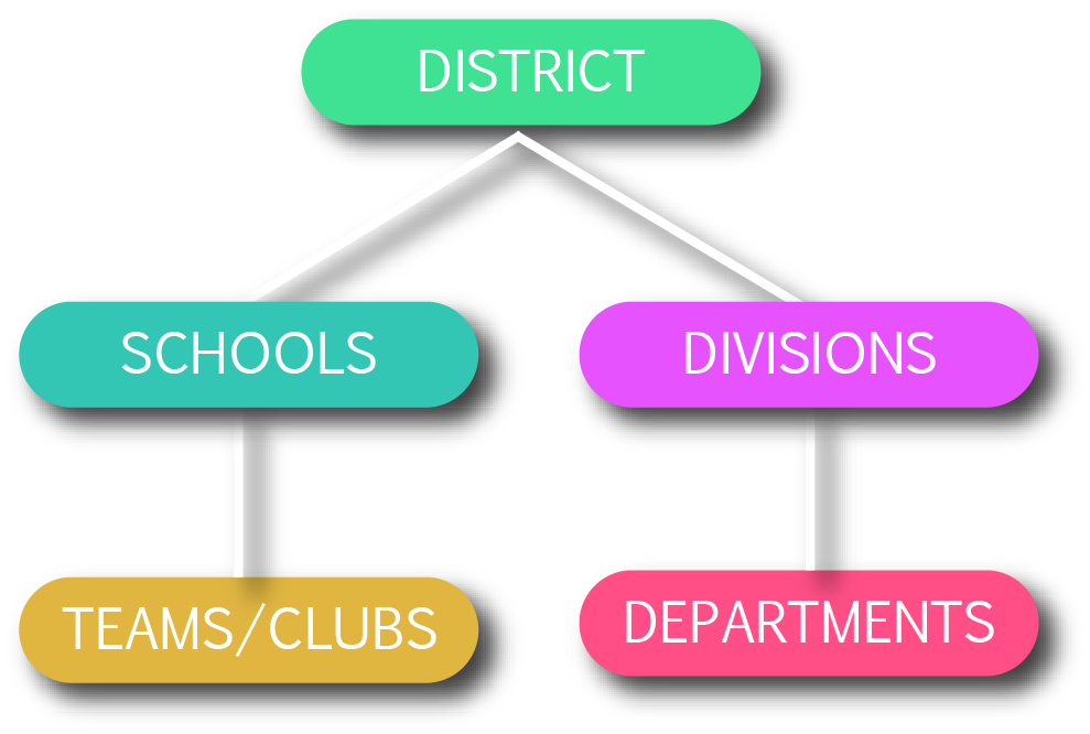 SchoolFeed is built to support the many-layers of educational structures. District information flows into schools, departments and more while school information flows down through its classrooms, groups and teams.